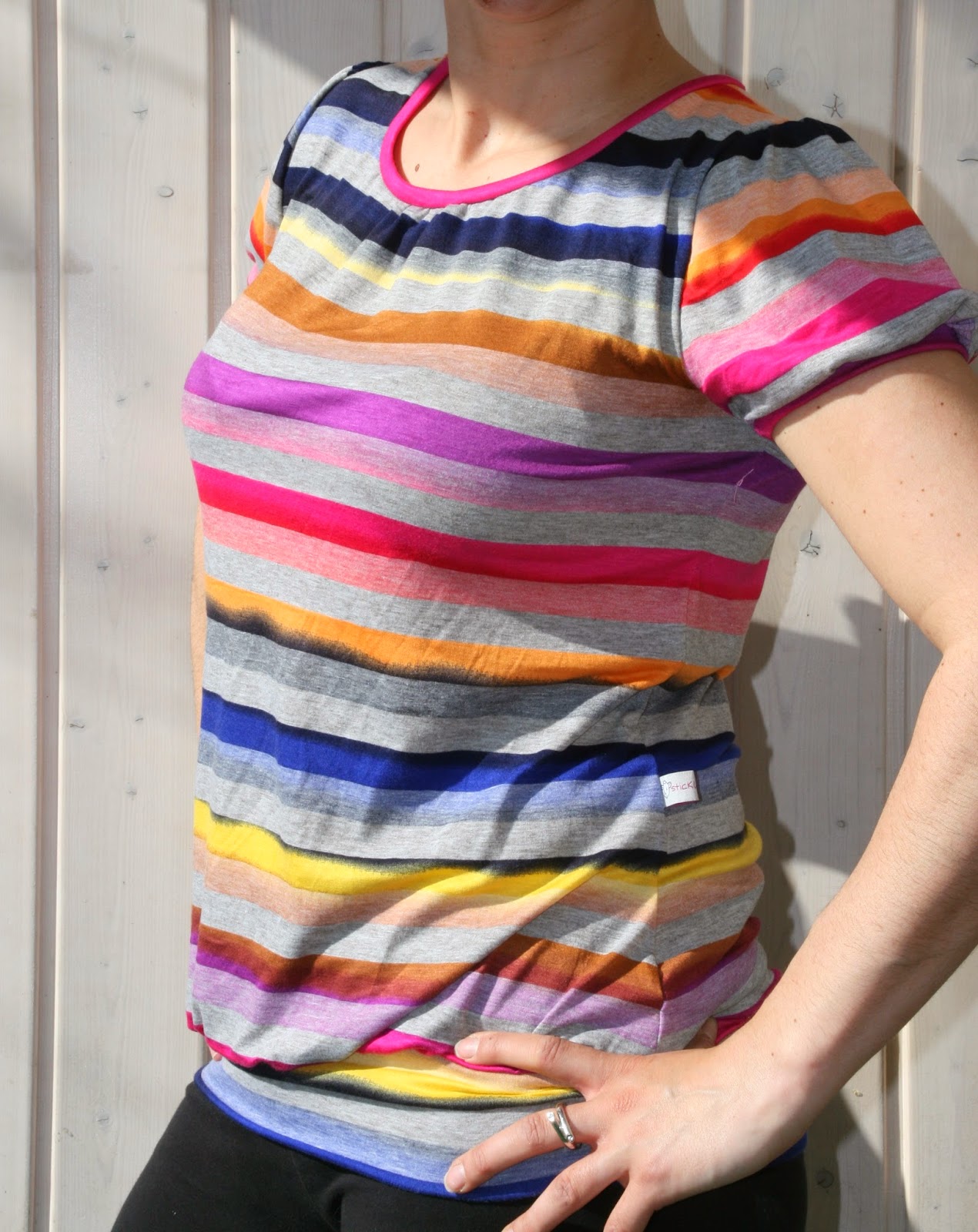 Ich habe mich für die Bündchen, Raffung am Ausschnitt und Puffärmel Variante entschieden.
